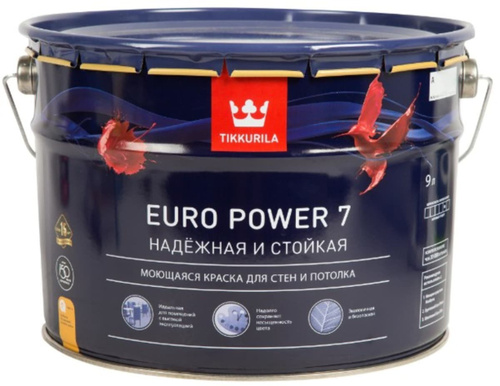 TIKKURILA EURO POWER 7 / ТИККУРИЛА ЕВРО ПАУЭР 7,БЕЛАЯ(БАЗА А) КРАСКА МАТОВАЯ МОЮЩАЯСЯ,9 л