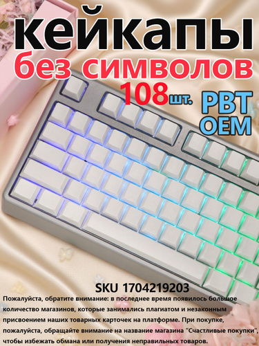 Кейкапы без символов для механической клавиатуры,белое,108шт.PBT OEM профиль пбт keycaps