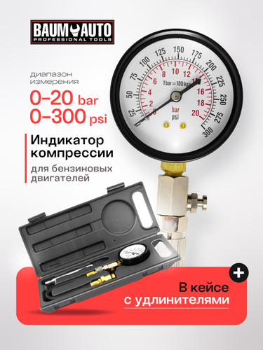 Тестер компрессии бензинового двигателя (0-20bar), 10 предметов в кейсе