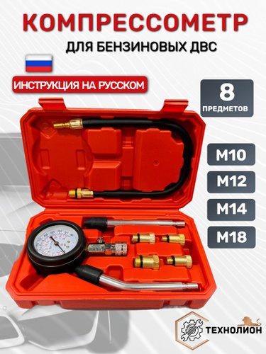Компрессометр для бензиновых двигателей/Набор для измерения компрессии 8 предметов ТМ Технолиониум
