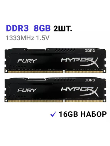Оперативная память FURY Black DDR3 16Gb (2x8Gb) 1333 Мгц DIMM для ПК 2x8 ГБ (HX313C9FBK2/16)