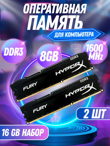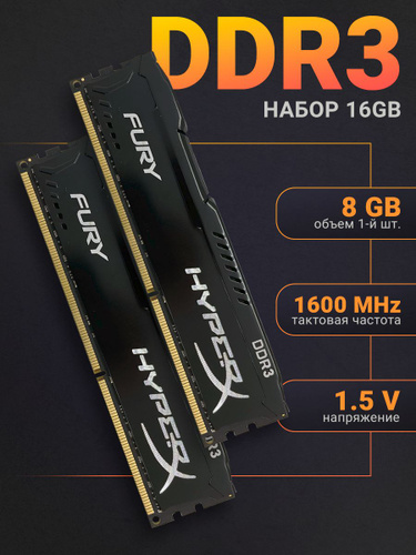 Оперативная память FURY Black DDR3 16Gb (2x8Gb) 1600 Мгц DIMM для ПК 2x8 ГБ (HX316C10FBK2/16)