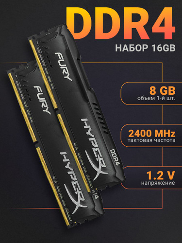 Оперативная память Fury Black DDR4 16Gb (2x8Gb) 2400 MHz DIMM 2x8 ГБ (HX424C15FBK2/16)