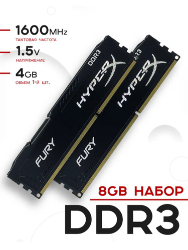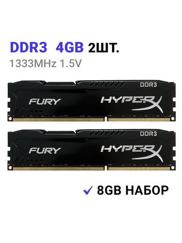 Оперативная память FURY Black DDR3 8Gb (2x4Gb) 1333 Мгц DIMM для ПК 2x4 ГБ (HX313C9FBK2/8)