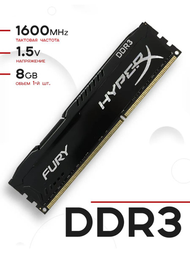 Оперативная память Fury Black DDR3 1600 Мгц 8Gb DIMM для ПК 1x8 ГБ (HX316C10FB/8)