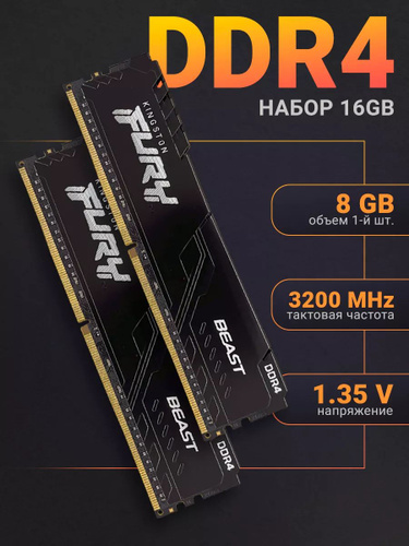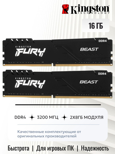 Kingston Fury Оперативная память Beast Black DDR4 16Gb (2x8Gb) 3200 MHz DIMM 2x8 ГБ (KF432C16BBK2/16)