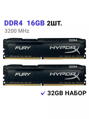 Оперативная память Fury Black DDR4 32Gb (2x16Gb) 3200 MHz DIMM с радиатором охлаждения 2x16 ГБ (HX432C16FB3K2/32)