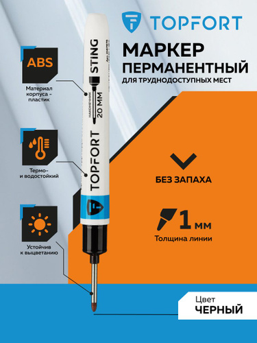 Маркер краска перманентный, тонкий TOPFORT, для универсальной маркировки, 1 мм, черный