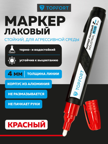 Маркер краска лаковый, TOPFORT Industrial Plus, для универсальной маркировки, 3-4 мм, красный