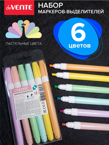 Набор маркеров текстовыделителей Mentality" 6 цветов двусторонние (кистевидный 2 мм/скошенный до 4 мм), трёхгранный корпус