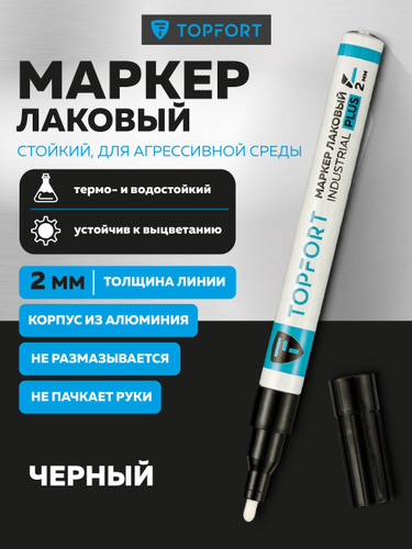 Маркер краска лаковый, TOPFORT Industrial Plus, для универсальной маркировки, 1-2 мм, черный