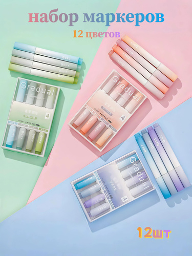 uniklo Набор маркеров Водный, толщина: 4 мм, 12 шт.для скетчинга, для выделения текста