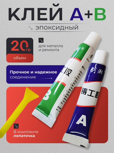 Эпоксидный клей двухкомпонентный для металла, ремонта, 20 гр.
