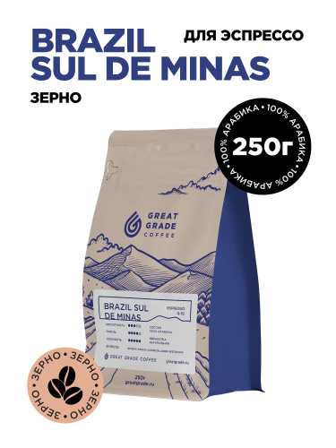 Кофе в зернах Бразилия Суль-де-Минас Great Grade Coffee, 250 г
