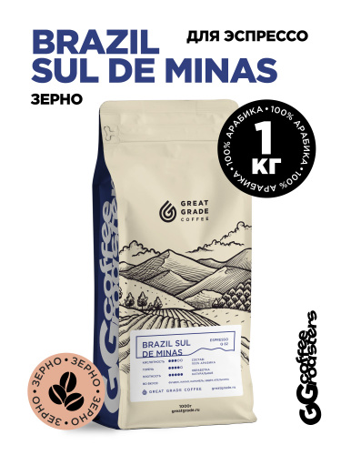 Кофе в зернах Бразилия Суль-де-Минас Great Grade Coffee, 1 кг