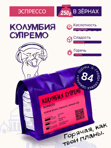 Кофе в зернах Колумбия Супремо 250г эспрессо обжарка