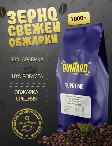 Кофе в зернах Колумбия Супремо 100% арабика 1 кг свежая обжарка