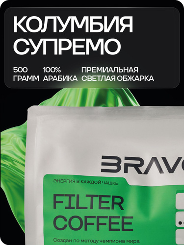 Кофе в зернах Bravos Coffee Колумбия Супремо 500 гр.