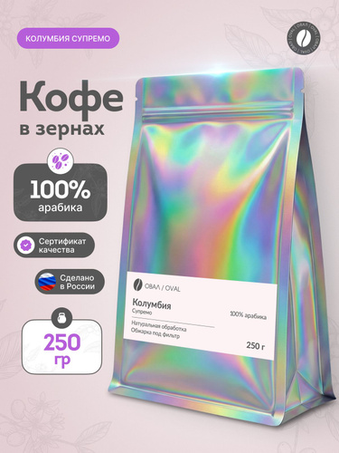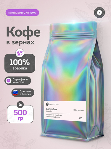 Кофе в зернах 500 гр, Колумбия Супремо, 100% арабика, OVAL, средняя обжарка
