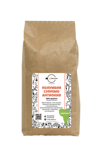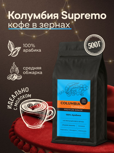 Кофе в зернах Колумбия Супремо 100% Арабика 1 кг Высший сорт