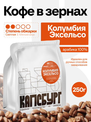 Кофе в зернах 250 г КАПСБУРГ КОЛУМБИЯ Супремо свежеобжаренный кофе в зернах арабика 100%, КАПСБУРГ