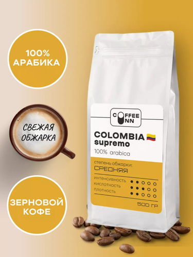 Кофе в зернах 500гр 100% АРАБИКА КОЛУМБИЯ СУПРЕМО свежая обжарка