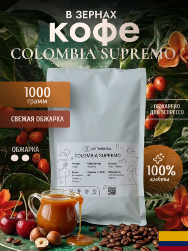 Кофе в Зернах Колумбия Супремо 100% Арабика средняя обжарка 1 кг Coffeelavka