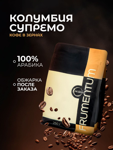 Кофе в зернах 250 г Колумбия Супремо Frumentum, 100% арабика свежей обжарки