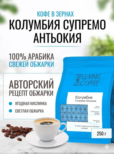 Кофе в зернах Lemnis Coffee Колумбия Супремо Антьокия, 100% арабика, 250гр