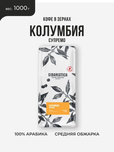 Кофе в зернах Sibaristica Колумбия Супремо, светлая обжарка, 100% Арабика, 1 кг