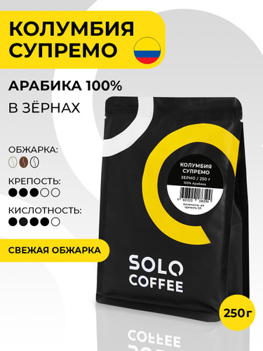 Кофе в зернах Solo Coffee Колумбия Супремо, 250 г, Арабика 100%, свежеобжаренный