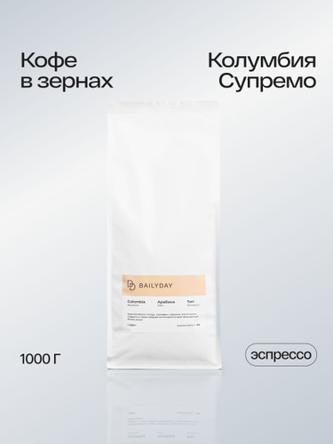 Кофе в зернах Колумбия Супремо Bailyday, 100% арабика, обжарка под эспрессо, 1 кг