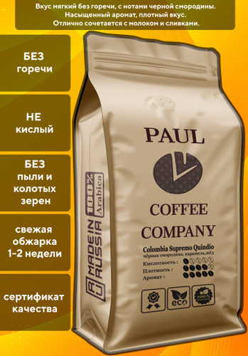 Кофе в зернах Колумбия Супремо Киндио 500 г Рaul Coffee Company 100% Арабика