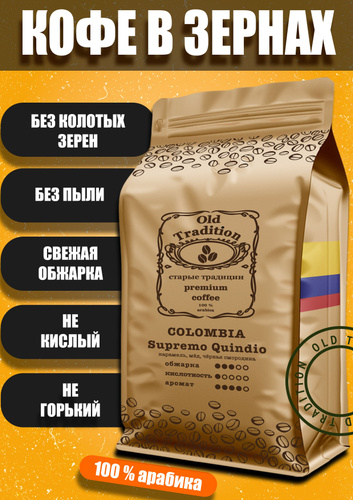 Кофе в зернах Колумбия Супремо Киндио 250 г Old Tradition 100% Арабика Старые Традиции