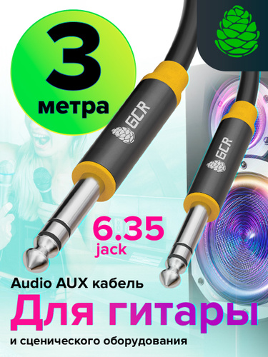 Инструментальный аудио кабель STEREO Jack 6.3 mm GCR 3 метра для микрофона электрогитары микшера черный акустический гитарный кабель