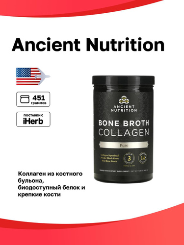 Ancient Nutrition, коллаген из костного бульона, без добавок, 450 г (15,9 унции)