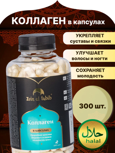 Коллаген натуральный говяжий "Zein al tabib" collagen 1 и 3 типа, пищевые добавки 300 капсул пептидный. Витамины для суставов и кожи Зейн аль Табиб