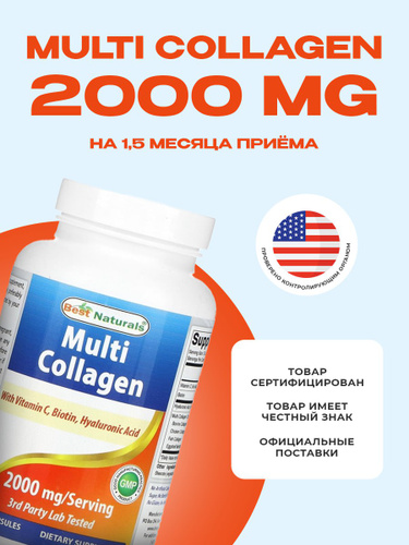 Коллаген мульти 5 типов, 2000 мг., 120 капсул