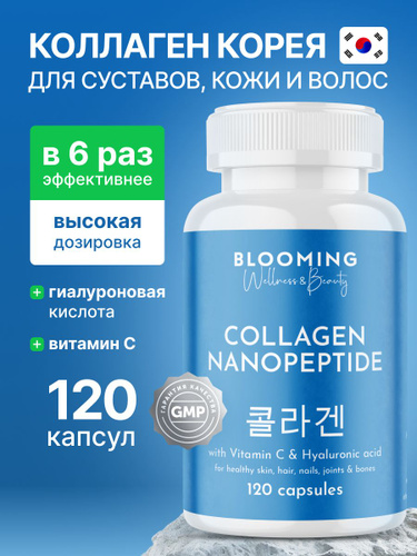 Морской коллаген + гиалуроновая кислота для кожи о ногтей 1000 мг 120 капсул