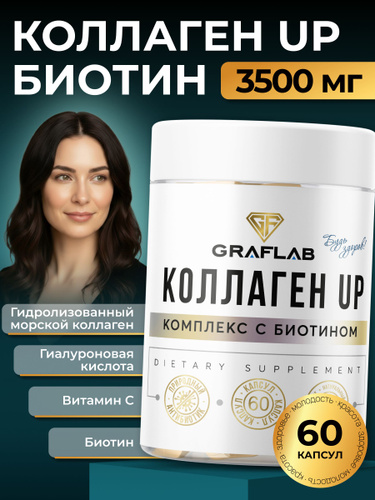 Коллаген морской в капсулах, (коллаген ап) Collagen UP, с витамином С, гиалуроновой кислотой и биотином, 3500 мг, 60 капсул