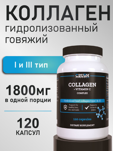 Collagen / Коллаген в капсулах, с витамином C, гидролизованный говяжий коллаген 1 и 3 типа, 120 капсул
