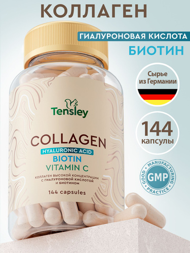 Коллаген с витамином С и гиалуроновой кислотой, для женщин, для кожи, волос, суставов, 60 капсул