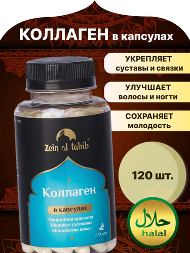 Коллаген натуральный говяжий "Zein Al Tabib" collagen 1 и 3 типа, пищевые добавки 120 капсул пептидный. Витамины для суставов и кожи Зейн аль Табиб
