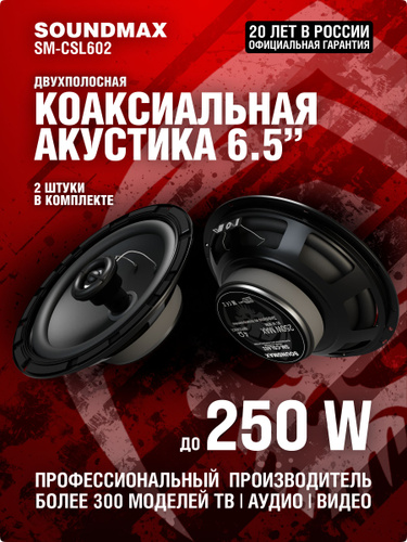 Автомобильные колонки Soundmax SM-CSL602 2 штуки до 250 ватт 6,5 дюймов глубокий бас коаксиальная акустика басы в машину