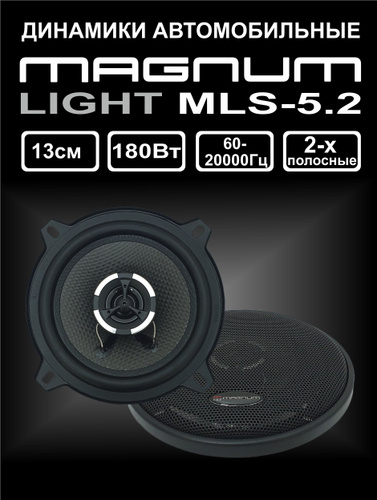 Динамики автомобильные 13 см MAGNUM MLS-5.2, колонки 13 см автомобильные, 2-х полосные, 180 Вт, 2 шт.