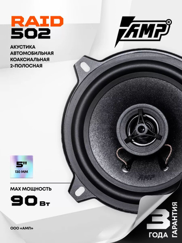 Динамики автомобильные 13 см AMP MASS 502 / Колонки автомобильные, 2 ШТ
