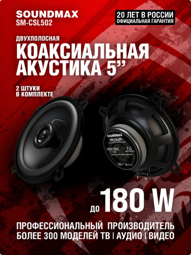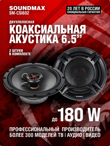 Автомобильные колонки SOUNDMAX SM-CSI602 2 шт до 180 ватт размер 16.5см 6,5 дюймов глубокий бас коаксиальная акустика басы в машину