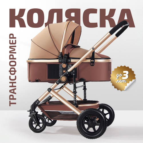 Детская коляска-трансформер на возраст от 0 до 36 месяцев с люлькой-переноской и системой амортизации