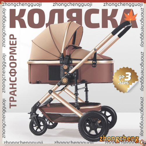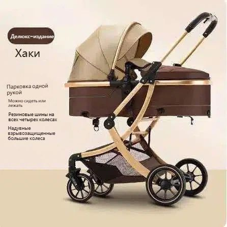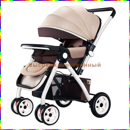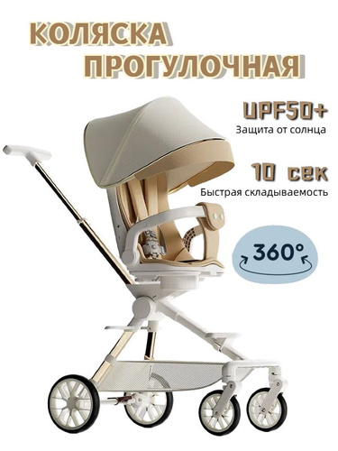 Детская коляска-трансформер 3-в-1: складная, реверсивная, с регулируемым капюшоном и подставкой Высокая посадка, 360 вращение, подушка безопасности