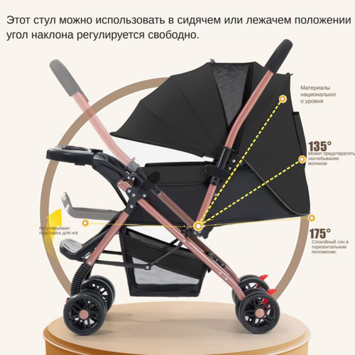 Двусторонняя прогулочная коляска-трансформер: сидячее и лежачее положение, лёгкая и компактная, простое складывание и поворот рамы